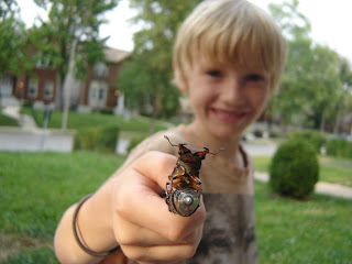This is a reddish brown stag beetle found inside our home one morning. He entered through a hole in the door and was disappointed to find a little boy that wanted to play with him.
